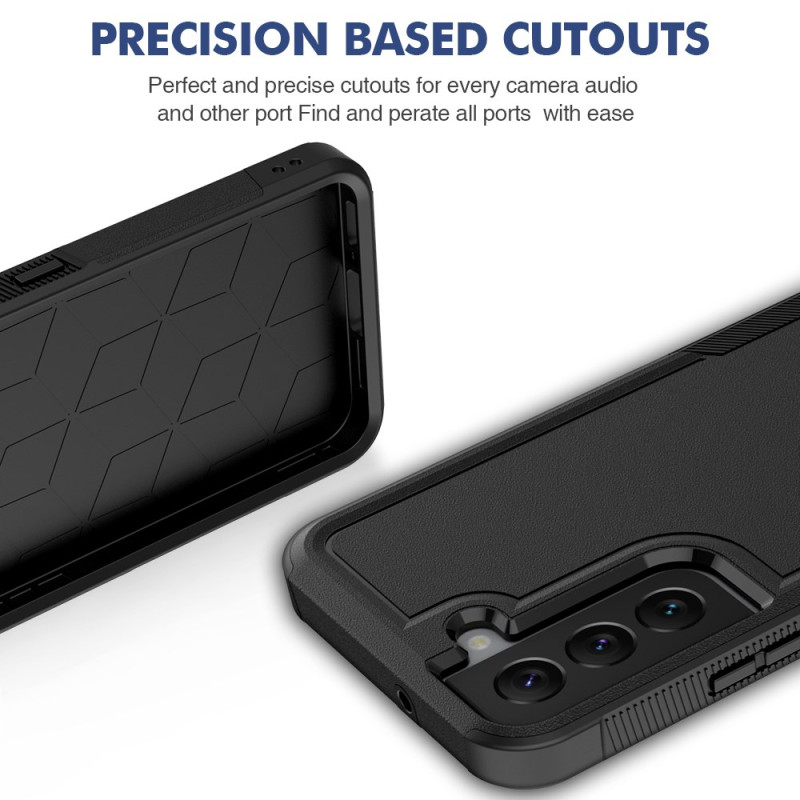 Descubre nuestra funda protectora 2 en 1 para Samsung Galaxy S22 5G. Fabricada en PC y TPU, ofrece una mayor protección contra golpes y arañazos. Con bordes elevados para la pantalla y la cámara, recortes precisos y un marco reforzado, esta funda combina seguridad y funcionalidad.