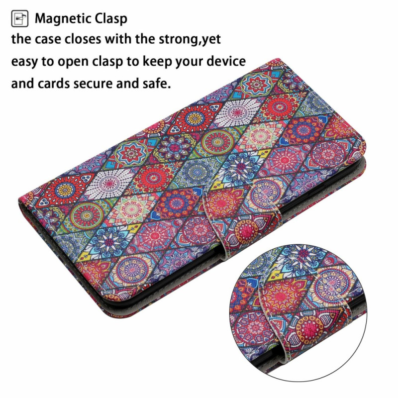 Funda La Patchwork y el cordón son el accesorio perfecto para dar a su Samsung Galaxy S23 FE un toque de estilo retro de los años 70, al tiempo que le ofrecen una protección total.