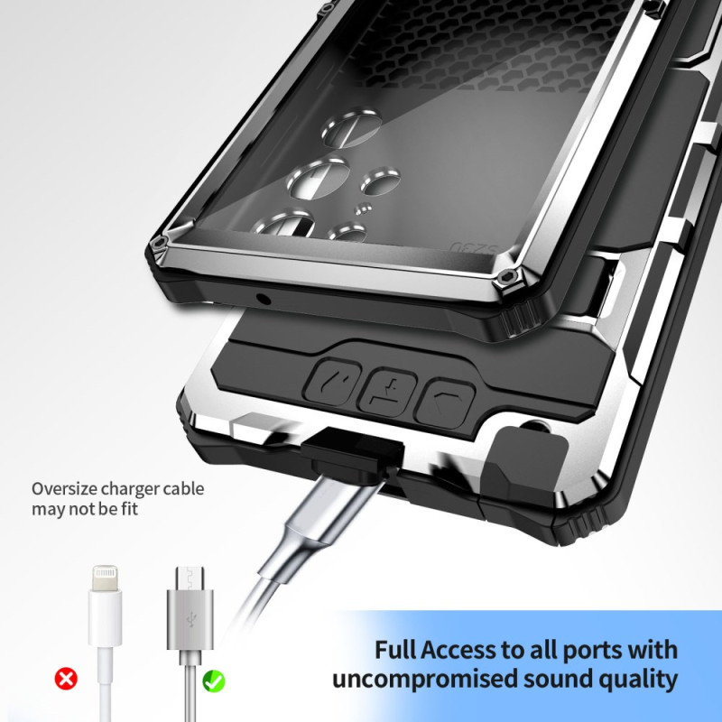Descubre nuestra funda resistente para el Samsung Galaxy S23 Ultra. Con su resistente construcción de plástico, silicona y metal, ofrece una protección completa contra caídas, agua y polvo.