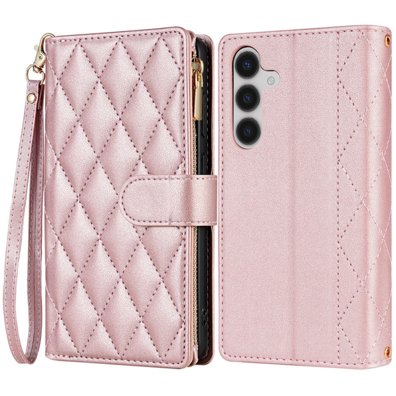 Descubra nuestra funda acolchada tipo cartera para Samsung Galaxy S24 FE, diseñada con un elegante patrón de costura en forma de diamante.