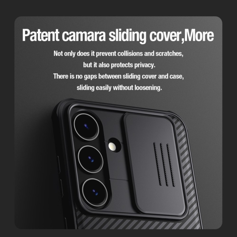 Elle offre une protection fiable avec un cadre en silicone et une coque en plastique rigide, tout en protégeant votre vie privée grâce à son couvercle coulissant.