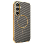 Descubre nuestra elegante y duradera funda protectora para Samsung Galaxy S25 FE. Fabricada en TPU flexible con un acabado galvánico premium, ofrece una excelente absorción de impactos y protección. Su textura de fibra de carbono resiste las huellas dactilares, mientras que sus bordes elevados protegen la pantalla y la cámara. Protección completa y elegante para su smartphone.