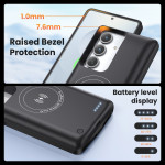 Cette coque batterie offre une autonomie généreuse pour ton Galaxy S25+ ou S24+ grâce à sa capacité de 10000mAh. Elle combine protection et énergie supplémentaire dans un seul accessoire, tout en intégrant une recharge magnétique sans fil pratique pour un usage quotidien fluide. L’indicateur LED permet de suivre facilement le niveau de batterie, et la gestion intelligente de l’alimentation optimise la durée de vie du chargeur. Sa conception robuste en silicone, PC et ABS renforce la sécurité contre les chocs et les risques électriques.