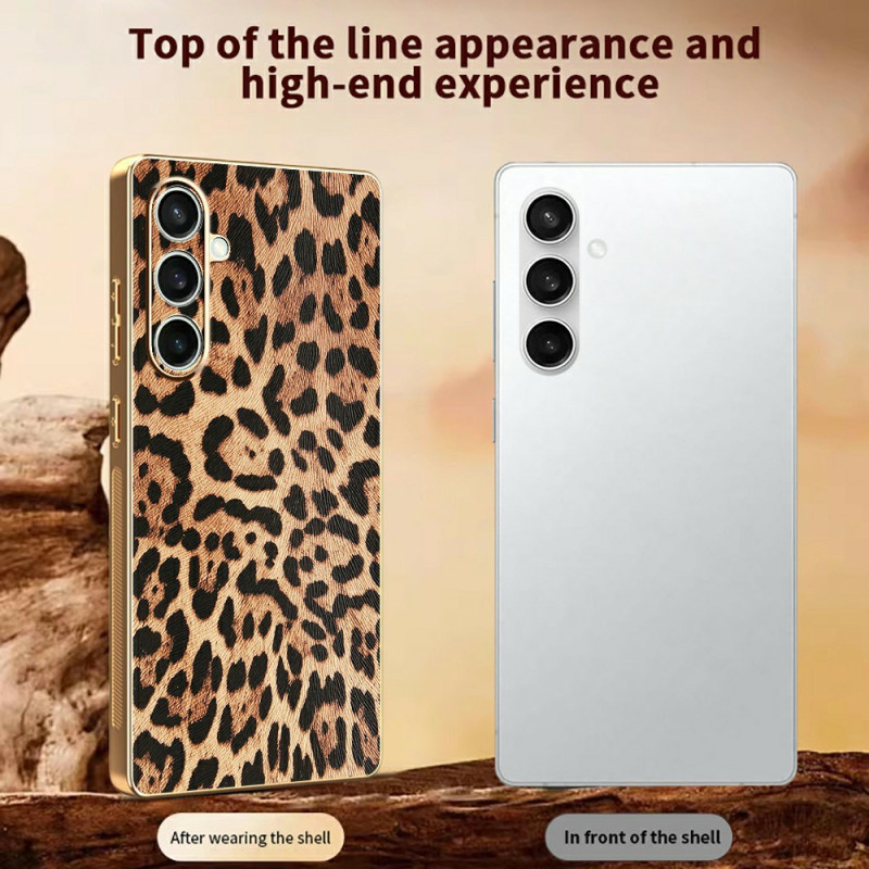 Protege tu Samsung Galaxy S26 5 con estilo gracias a esta funda con un atrevido estampado de leopardo y bordes de oro electrolítico. Combinando elegancia y robustez, ofrece una protección óptima a la vez que añade un toque de originalidad a tu teléfono.