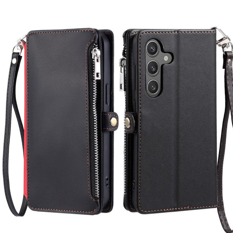 Elegante funda tipo cartera que ofrece una protección completa para su Samsung Galaxy S26 5G. Incluye 8 ranuras para tarjetas, un compartimento con cremallera y una práctica función de soporte. La colgante de mano incluida garantiza un transporte seguro.
