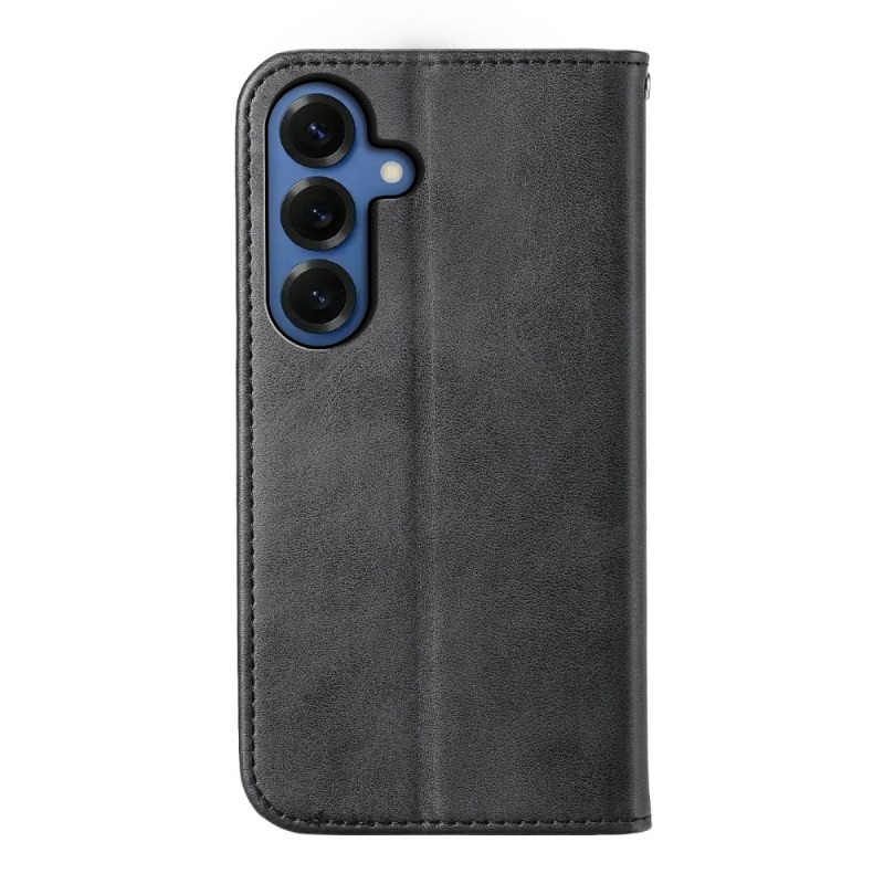 Protégez votre Samsung Galaxy S26 avec élégance grâce à cet étui portefeuille en cuir PU texture veau. Doté de fentes pour cartes, d'une fermeture magnétique sécurisée et d'une dragonne pratique pour un transport facile et sûr.