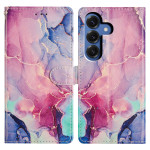 Elegante funda cartera con solapa y estampado de mármol verde y rosa para Samsung Galaxy S26 Plus. Diseño todo en uno con 2 ranuras para tarjetas, bolsillo para fotos y amplio compartimento lateral. Soporte integrado para tener las manos libres y colgante de mano desmontable incluida.