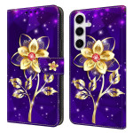 Protege tu Samsung Galaxy S26 Plus con estilo gracias a esta funda cartera con solapa adornada con bonitas flores doradas sobre fondo morado. Con un práctico soporte desplegable y compartimentos para tarjetas, combina estilo y funcionalidad.