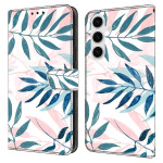 Elegante funda con solapa y motivo de hojas de acuarela para Samsung Galaxy S26 Plus 5G. Con soporte plegable, 2 ranuras para tarjetas y cierre magnético seguro. Protección completa contra los arañazos y golpes cotidianos.