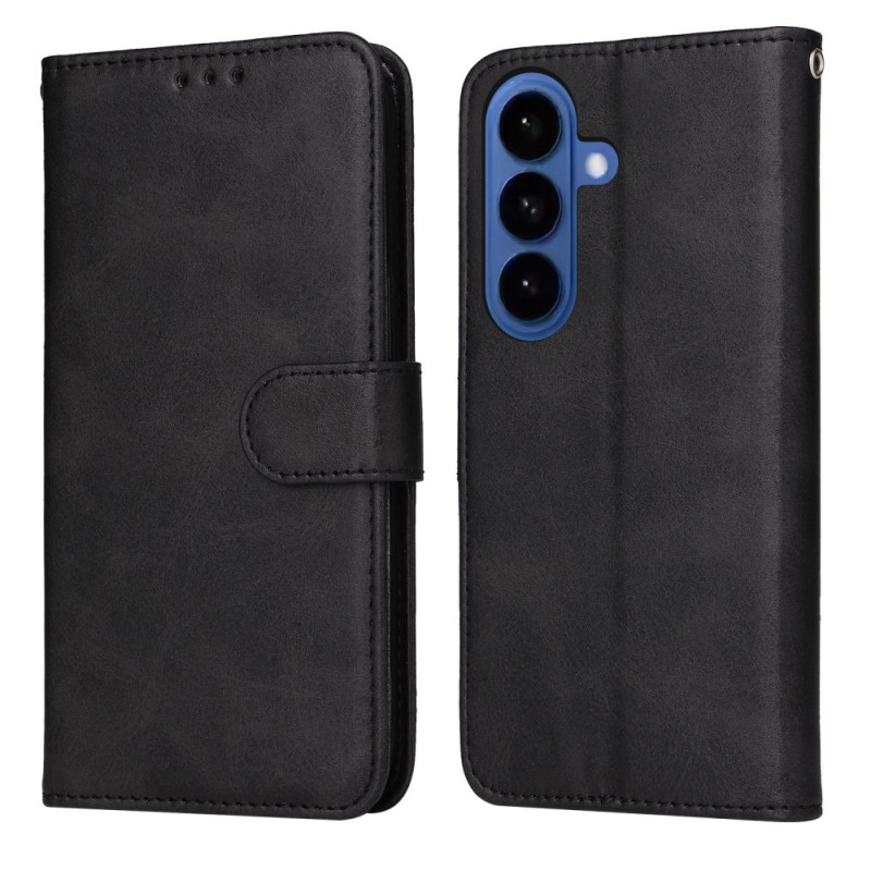 Découvrez notre étui portefeuille élégant pour Samsung Galaxy S26 Plus 5G. Doté de fentes pour cartes, d'une fonction support et d'une fermeture magnétique sécurisée, cet étui en cuir synthétique texture veau offre une protection complète à 360° avec coque TPU intégrée.