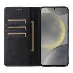 Funda monedero de piel de PU para Samsung Galaxy S26 Plus con tecnología de bloqueo RFID. Dispone de 3 ranuras para tarjetas, bolsillo para dinero en efectivo y cierre magnético automático. Protección total con bordes elevados para la cámara.