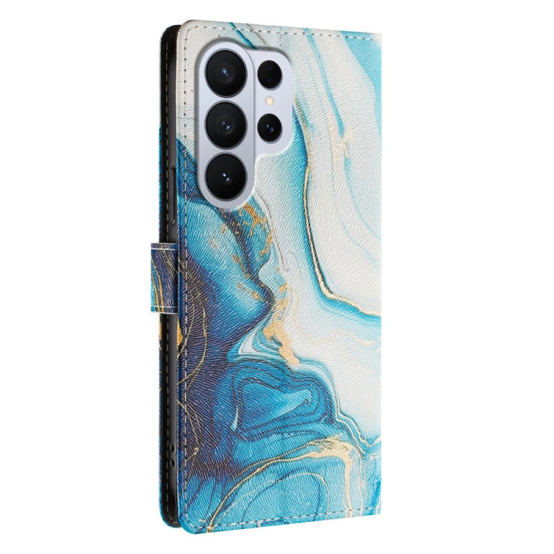 Protege tu Samsung Galaxy S26 Ultra con estilo gracias a esta funda cartera con un sofisticado diseño de mármol azul. Con 2 ranuras para tarjetas, un bolsillo para el efectivo y una colgante de mano desmontable, combina estilo y practicidad.