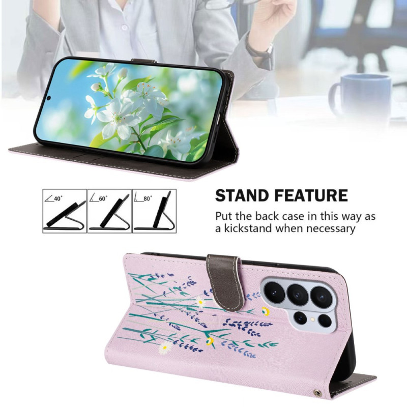 Protege tu Samsung Galaxy S26 Ultra con estilo gracias a esta funda cartera de polipiel en color lavanda. Diseño refinado con motivos estampados, funda de TPU resistente a los golpes, soporte ajustable y colgante de mano desmontable para un uso diario práctico.