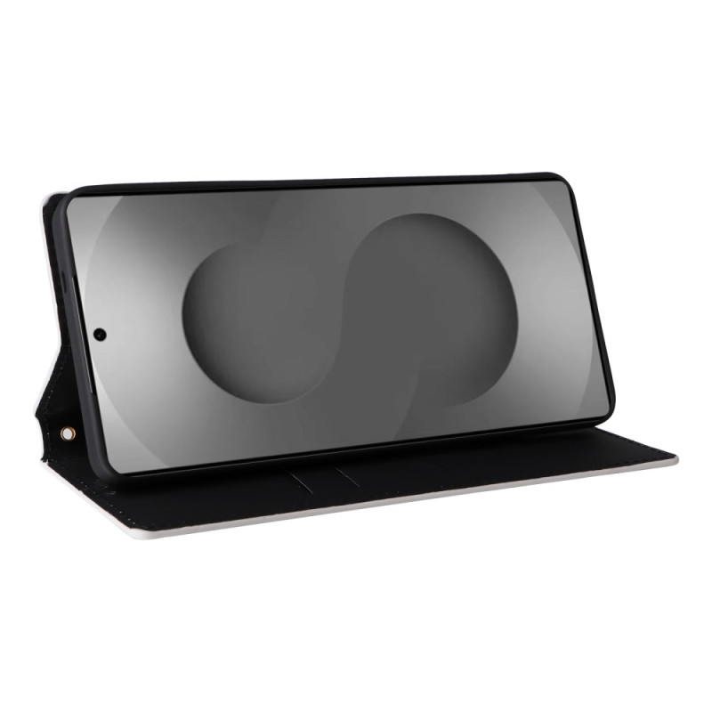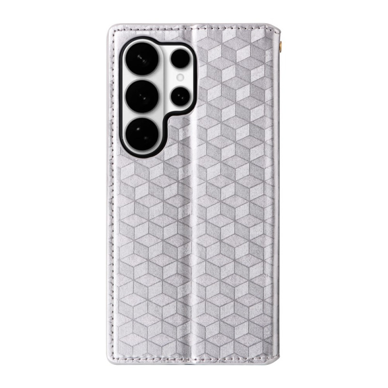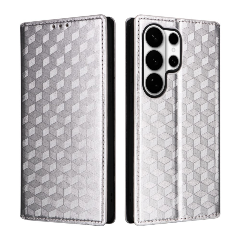 Elegante funda monedero de cuero PU con estampado de diamantes en 3D para Samsung Galaxy S26 Ultra. Con 2 ranuras para tarjetas, 1 compartimento para billetes y función manos libres. Cierre magnético seguro y protección total de 360°.