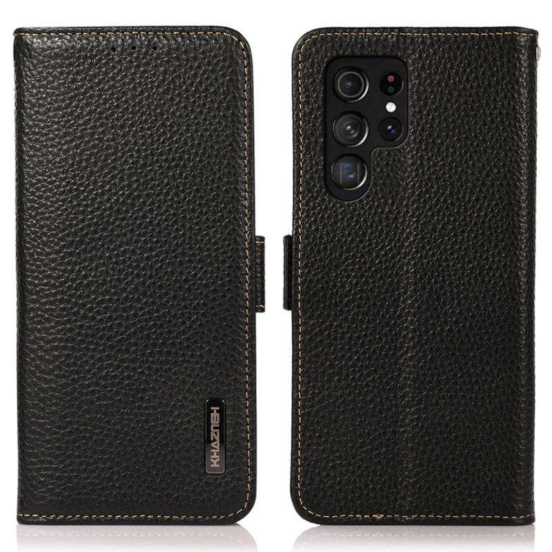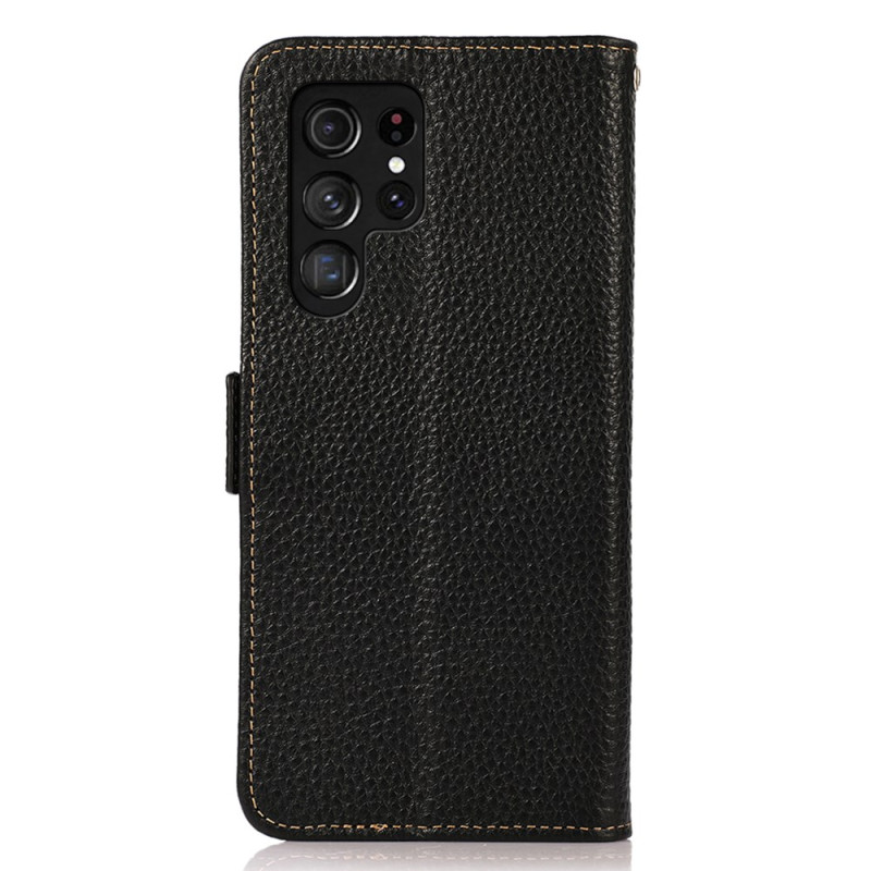 Sofisticada funda de piel auténtica con textura de lichi para Samsung Galaxy S26 Ultra. Disfruta de protección RFID avanzada, prácticas ranuras para tarjetas y un soporte convertible para ver tus contenidos con total libertad.