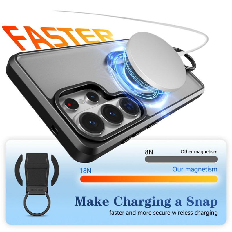 Protégez votre Samsung Galaxy S26 Ultra avec cette coque magnétique innovante. Elle intègre un support pliable pour visionner vos contenus en mode mains libres et un anneau rotatif pour une prise en main sécurisée. Compatible avec les chargeurs magnétiques.