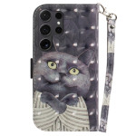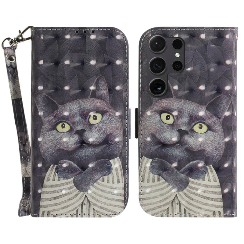 Élégant étui portefeuille avec motif chat câlin pour Samsung Galaxy S26 Ultra. Design raffiné en simili cuir avec fentes pour cartes, support pliable et fermeture magnétique sécurisée. Inclut une dragonne pratique pour un transport facile.