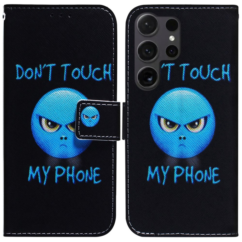 Étui portefeuille élégant pour Samsung Galaxy S26 Ultra avec motif imprimé 'Don't Touch My Phone'. Doté de compartiments pour cartes, support pliable et fermeture magnétique sécurisée. Protection optimale avec style et fonctionnalité au quotidien.