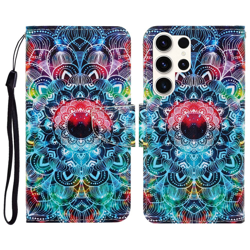 Protégez votre Samsung Galaxy S26 Ultra avec élégance grâce à cet étui à rabat au motif mandala raffiné. Doté de compartiments pour cartes, d'un support ajustable et d'une dragonne amovible, il allie style et praticité au quotidien.