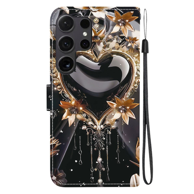 Protégez votre Samsung Galaxy S26 Ultra avec élégance grâce à cet étui portefeuille au motif cœur noir et or. Doté de fentes pour cartes, d'un support pliable et d'une dragonne pratique, il allie style et fonctionnalité...
