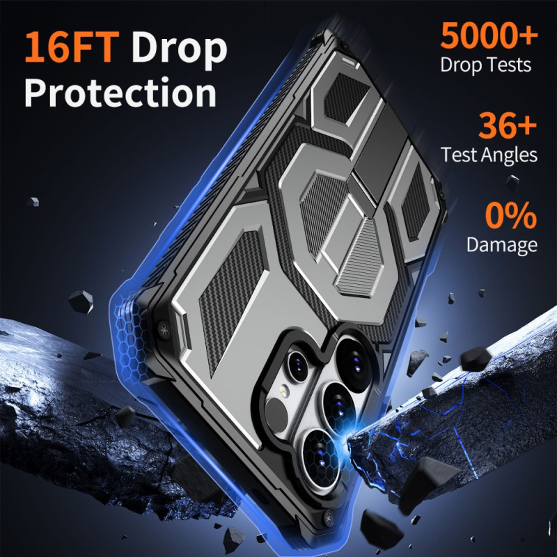 Protégez votre Samsung Galaxy S26 Ultra avec cette coque magnétique ultra-résistante. Dotée d'une béquille rotative multi-angles et d'une protection militaire contre les chutes jusqu'à 5 mètres, elle allie sécurité et praticité au quotidien.