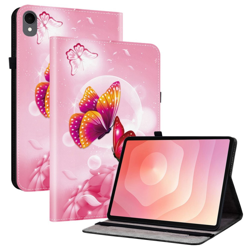 Descubre nuestra elegante funda protectora para tu Samsung Galaxy Tab S11. Fabricada en piel PU de alta calidad, ofrece una protección completa a la vez que añade un toque de estilo con su motivo de mariposa rosa. Disfruta del soporte integrado para facilitar la visualización, las prácticas ranuras para tarjetas y un cierre seguro con banda elástica.