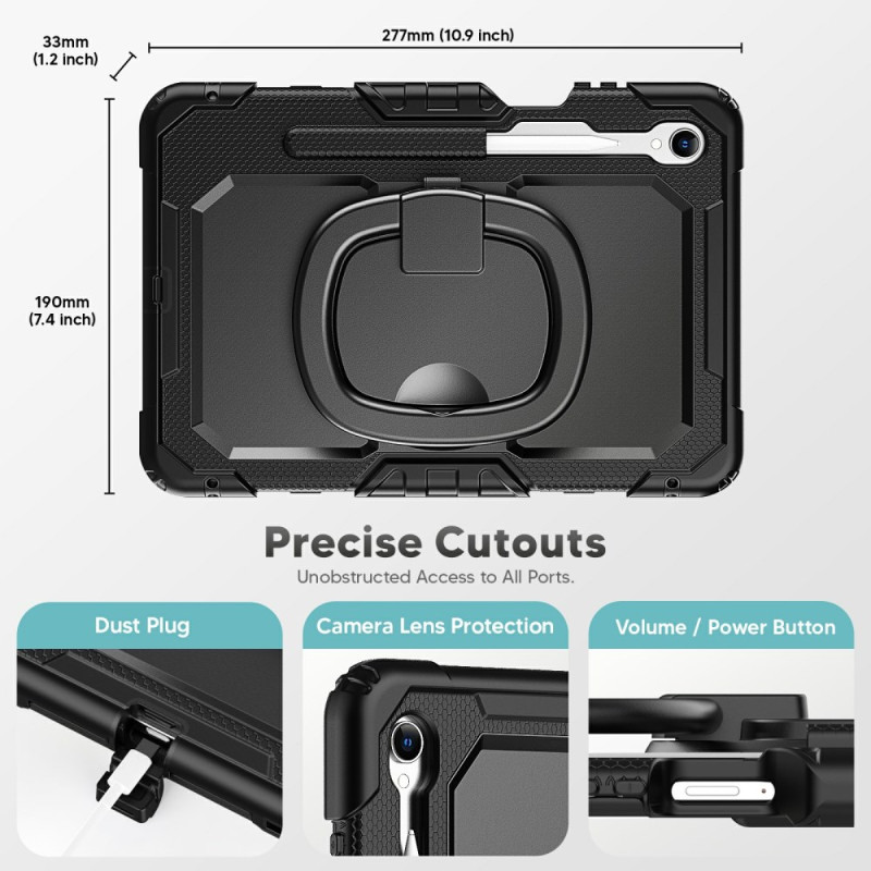 Descubra nuestra innovadora funda para Samsung Galaxy Tab S11. Combinando protección robusta y funcionalidad, ofrece la máxima defensa contra golpes y caídas. Su soporte giratorio de 360 grados permite una visualización manos libres en cualquier orientación.