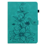 Descubra esta elegante funda de piel para Samsung Galaxy Tab S11. Ofrece una protección duradera de doble capa y combina estilo y funcionalidad con su motivo de flor de lis, ranuras para tarjetas y fotos, función de soporte ajustable y práctico soporte para bolígrafo.