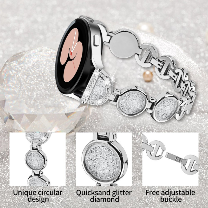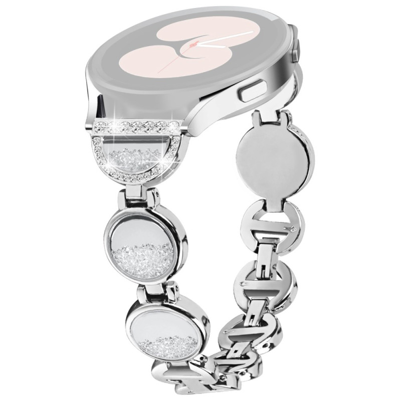 Descubra nuestra pulsera de metal para Samsung Galaxy Watch FE de 40 mm. Su diseño único con motivo circular y decoración de brillantes strass ofrece elegancia y estilo.