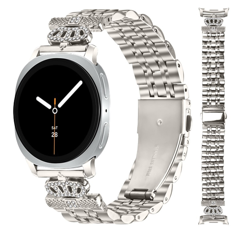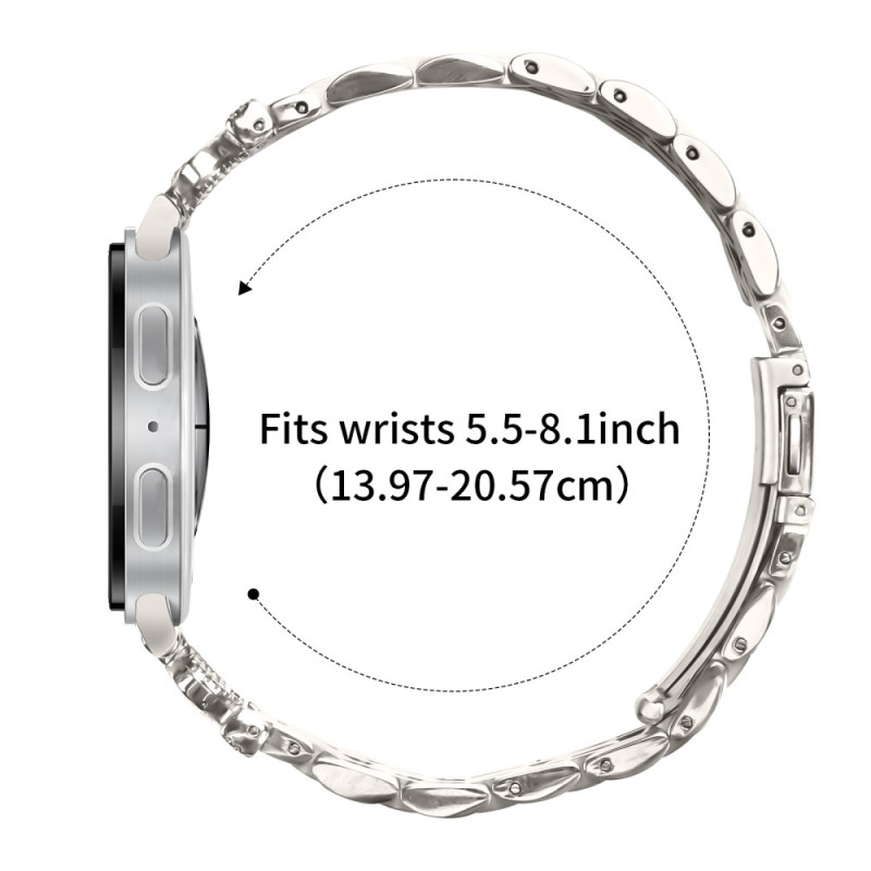de acero inoxidable para Samsung Galaxy Watch. Adornada con brillantes diamantes de imitación y con un diseño sofisticado, combina estilo y funcionalidad. Su longitud ajustable y cierre seguro garantizan una comodidad óptima y un ajuste perfecto.