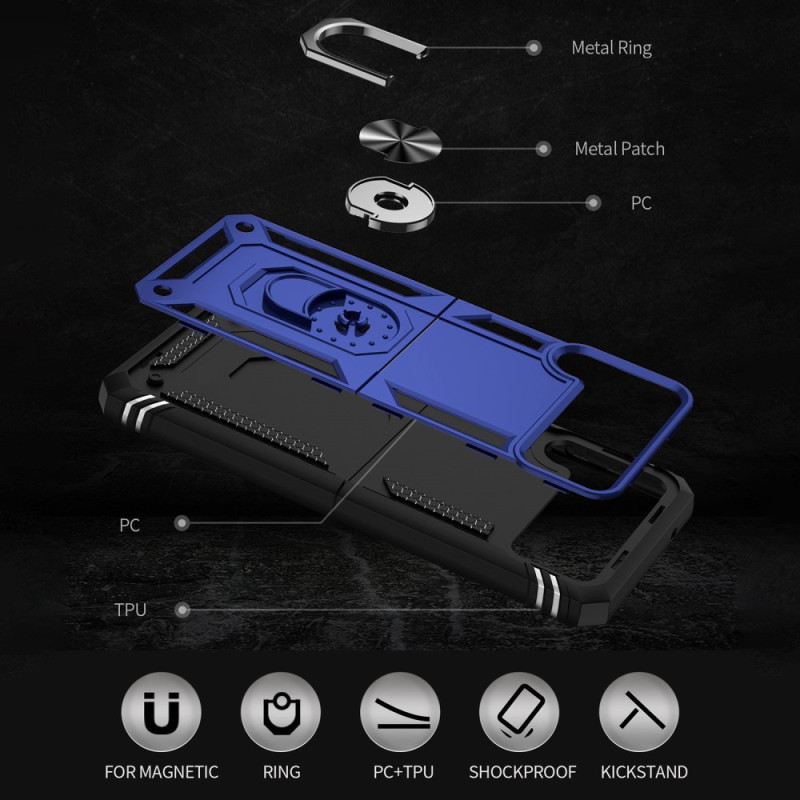 El anillo en la parte posterior de la funda mantiene el móvil con las manos libres.