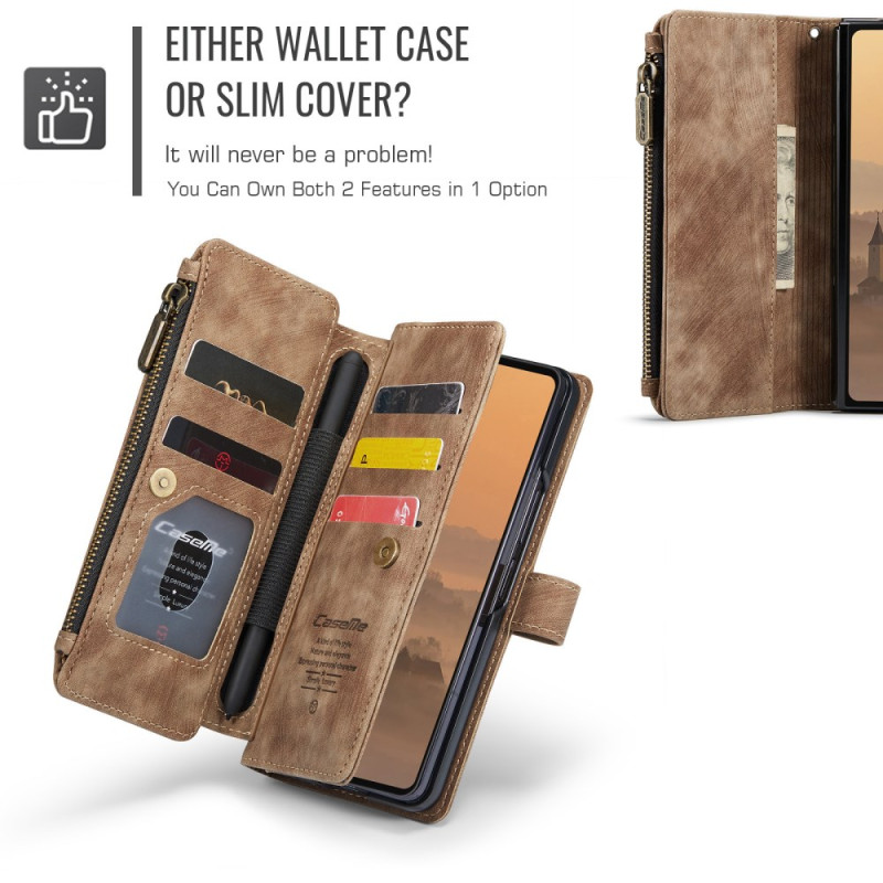 Descubre nuestra funda premium para Samsung Galaxy Z Fold 7 5G. Fabricada en resistente piel de PU y TPU, ofrece una protección fiable y un aspecto elegante. Con su compartimento con cremallera, múltiples compartimentos para tarjetas y billetes, función kickstand y cierre magnético, esta funda combina practicidad y estilo para un uso diario óptimo.