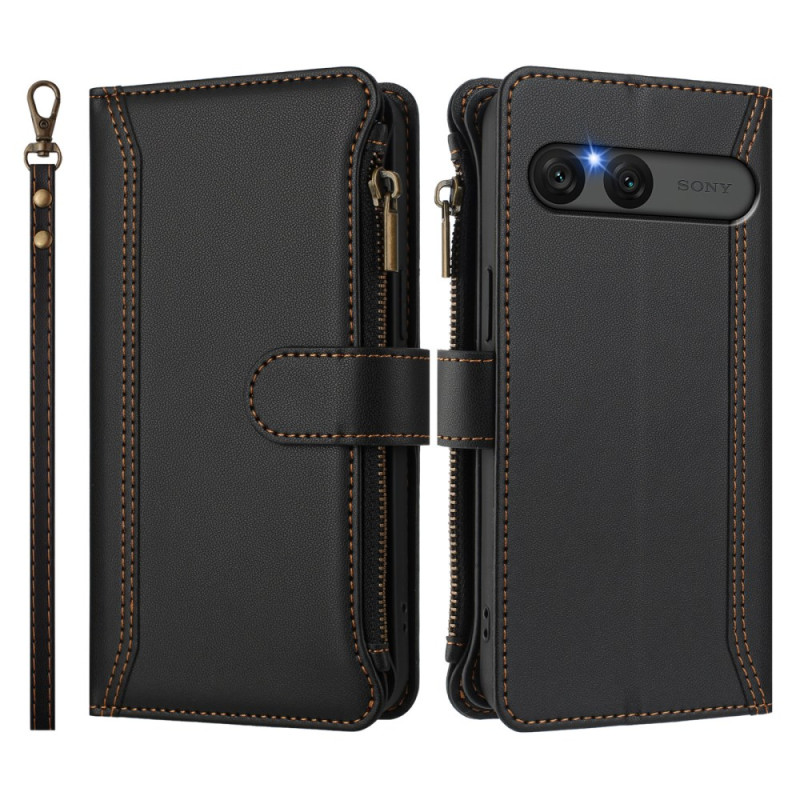 Funda de piel de primera calidad para Sony Xperia 10 VII con 9 ranuras para tarjetas, cierre de cremallera y función de soporte. Fabricada en piel de PU de alta calidad y TPU, ofrece una protección duradera contra golpes y caídas. El bolsillo con cremallera y las numerosas ranuras facilitan el almacenamiento de tarjetas, dinero y otros objetos pequeños.