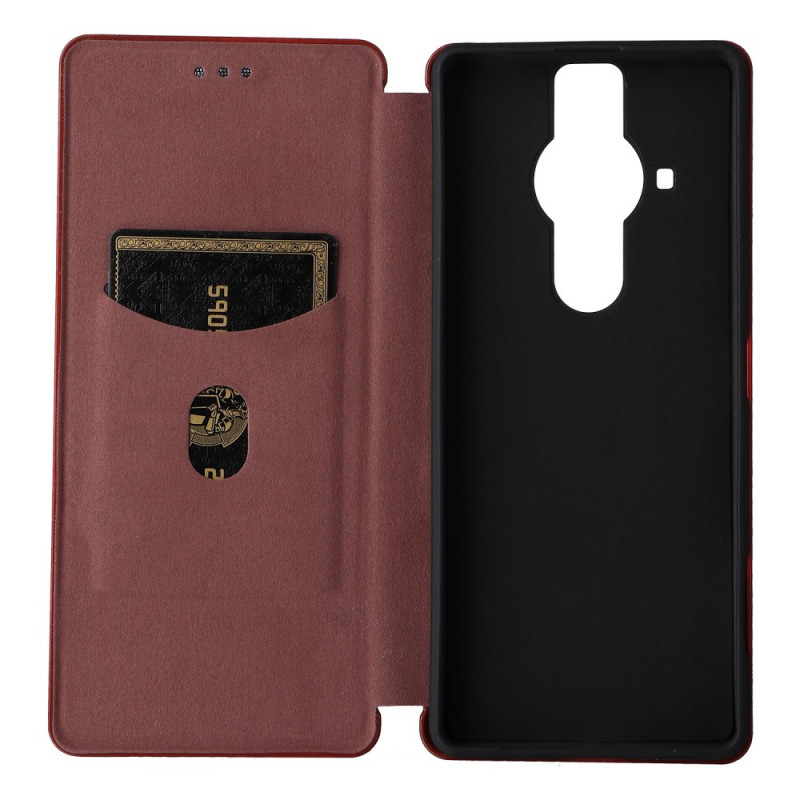 Tu Sony Xperia Pro-I está perfectamente seguro con esta funda abatible de estilo fibra de carbono que combina resistencia y elegancia.