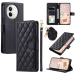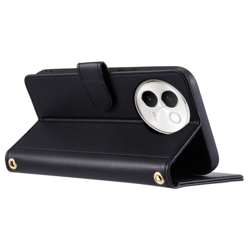 Elegante cartera con estampado de diamantes en relieve, función de soporte integrada y cierre magnético de doble cara. Dispone de ranuras para tarjetas, bolsillo monedero y bandolera extraíble para un transporte versátil.