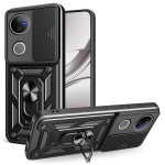 Protege tu Vivo V50 5G con esta robusta funda que incorpora una innovadora protección deslizante para la cámara, un soporte giratorio de 360° y resistencia a impactos de grado militar. Compatible con soporte magnético para coche.