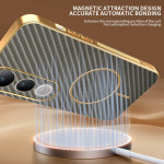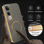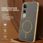 Protección elegante y resistente para tu Vivo V50 Lite. Diseño de TPU flexible con acabado galvanizado premium y textura de fibra de carbono que no deja marcas. Bordes elevados para proteger la pantalla y la cámara, recortes precisos y compatibilidad con cargador magnético.