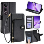 Funda cartera multifunción para Vivo V50 Lite 5G con elegante textura de cera de aceite. Cuenta con ranuras para tarjetas, bolsillo exterior con cremallera, soporte plegable y cierre magnético seguro. Protección completa contra golpes y caídas.
