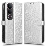 Elegante funda monedero de cuero PU con estampado de puntos en relieve para Vivo V50 Lite 5G. Diseño sofisticado que ofrece protección, práctico almacenamiento para tarjetas y dinero, función de soporte ajustable y colgante incluida para un transporte seguro.