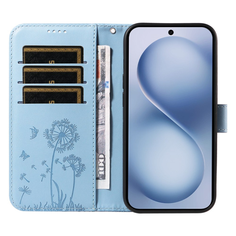 Elegante funda cartera con motivo de diente de león impreso para tu vivo X200 FE 5G. Diseño refinado con función de soporte, 3 ranuras para tarjetas, compartimento lateral y práctica colgante de mano. Protección óptima que combina estilo y funcionalidad.