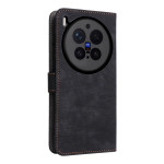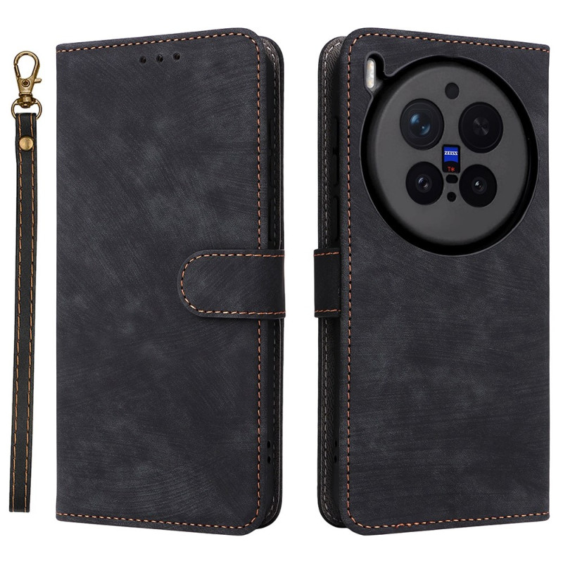 Elegante funda tipo cartera de cuero PU para Vivo X300 Pro 5G con bloqueo RFID, 3 ranuras para tarjetas, soporte para manos libres y colgante para la muñeca. Protección completa contra los golpes diarios con cierre magnético seguro.