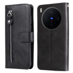 Descubre la funda cartera multifunción para Vivo X300 5G. Diseño elegante en piel de PU con compartimentos para tarjetas, bolsillo seguro con cremallera para objetos pequeños y soporte integrado para ver con las manos libres.