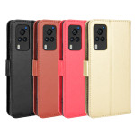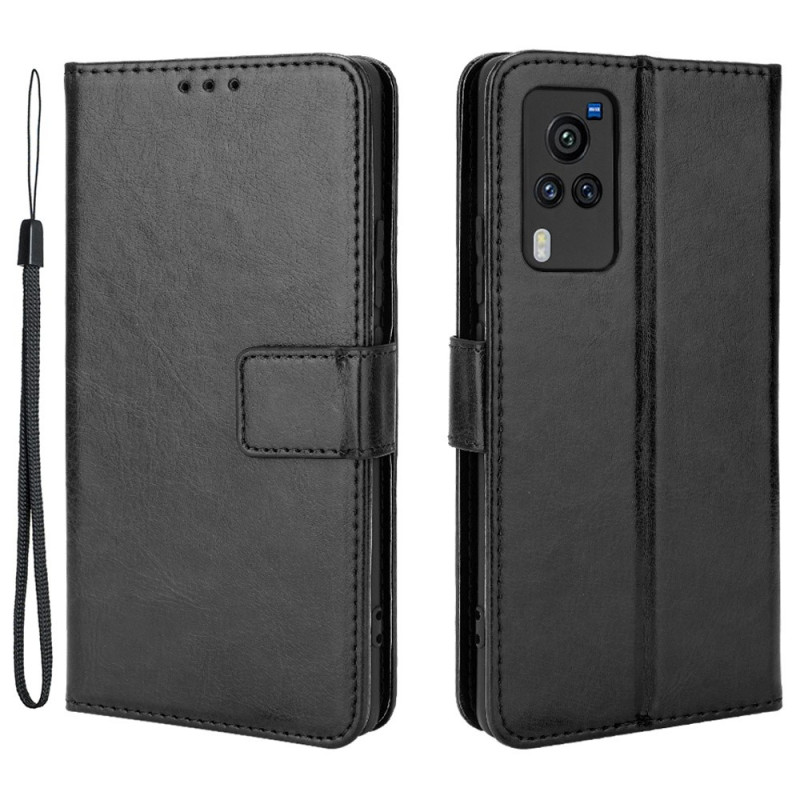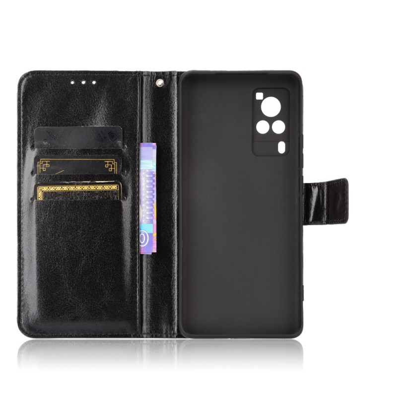 Elegante funda tipo cartera para vivo X60 Pro 5G con textura sofisticada. Diseñada en piel sintética de primera calidad con una funda interior de TPU, combina estilo y protección. Cuenta con 3 ranuras para tarjetas, 1 compartimento para billetes y función de soporte.