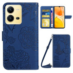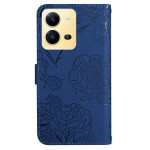 Elegante funda tipo cartera con mariposas y flores en relieve para Vivo X80 Lite 5G. Protección total contra impactos, soporte ajustable, compartimentos para tarjetas y colgante para el hombro incluidos. Cierre magnético seguro.