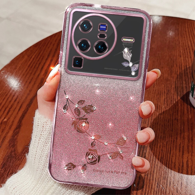 Protege tu Vivo X80 Pro 5G con estilo gracias a esta funda de TPU adornada con brillantes lentejuelas degradadas, un intemporal estampado floral y delicadas piedras de strass. Un diseño glamuroso que combina estilo con protección para el día a día.