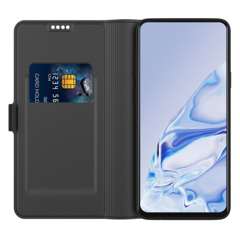 Los recortes internos permiten alojar tarjetas directamente en la funda.