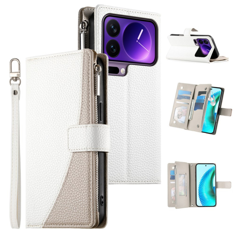 Funda cartera de piel con cremallera para Xiaomi 17 Pro. Protección completa, diseño elegante con textura refinada. Incluye correas para llevarla cómodamente, múltiples compartimentos de almacenamiento y función de soporte para ver con las manos libres. Fácil acceso a todos los puertos y botones.