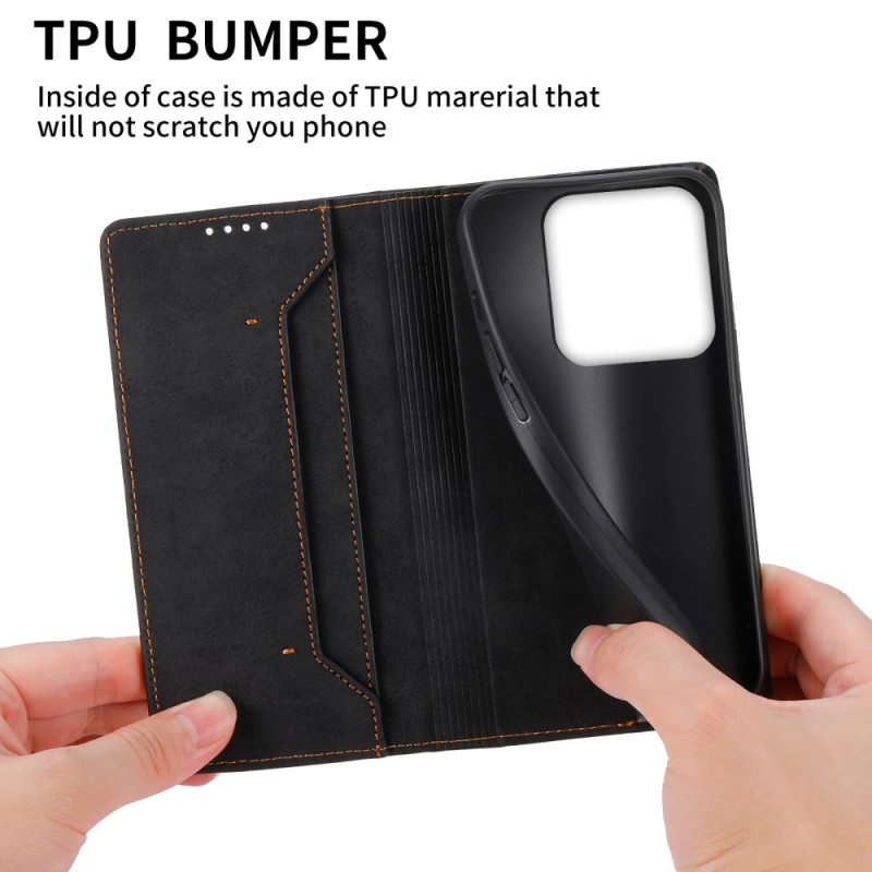 Découvrez la flip cover Effet Cuir Rétro pour Xiaomi 14, un accessoire de téléphone qui allie style et fonctionnalité.