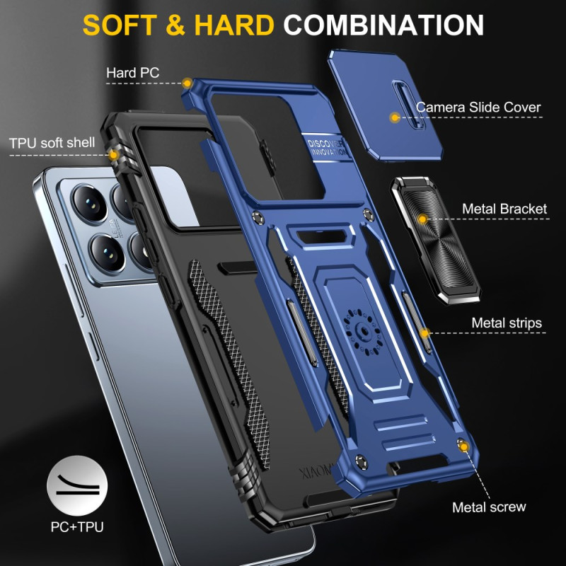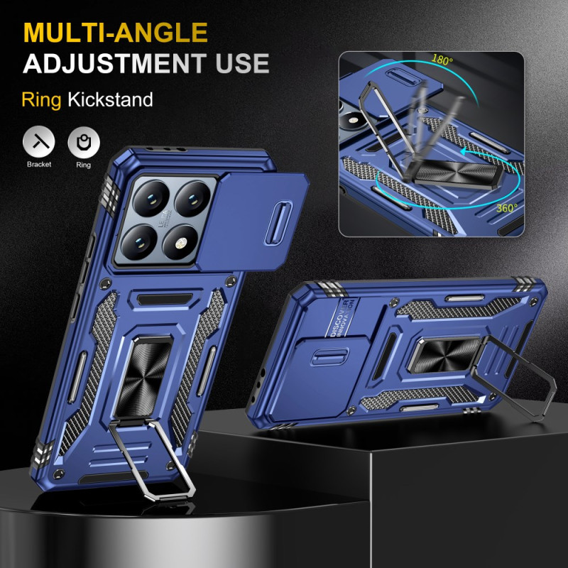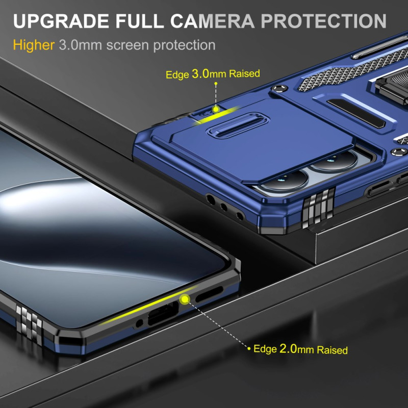 Descubre nuestra innovadora funda para la Xiaomi 14T. Con un soporte ajustable y protección deslizante para la lente, ofrece la máxima protección contra golpes y caídas.
