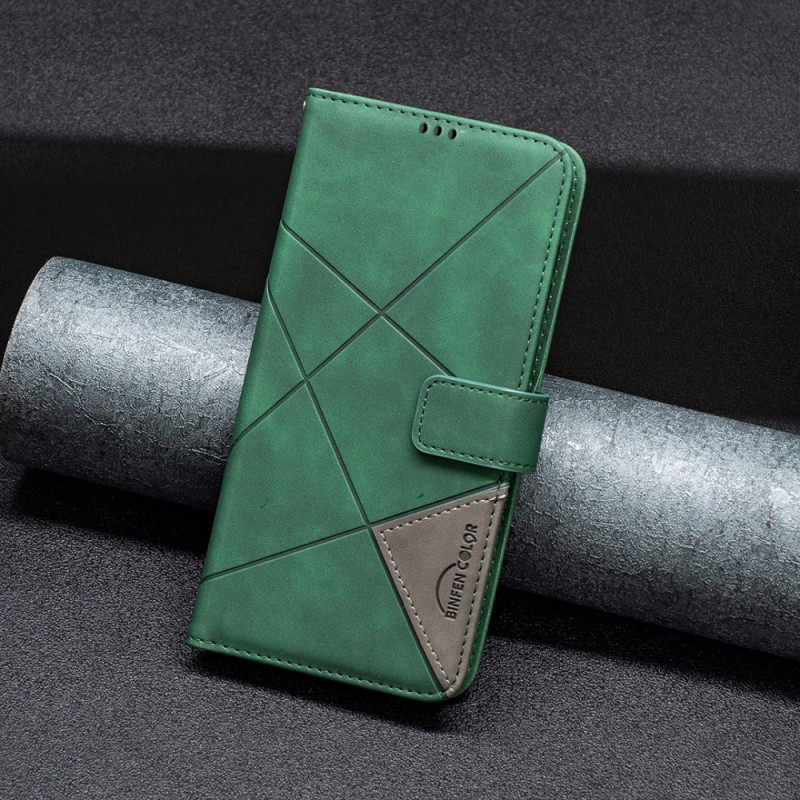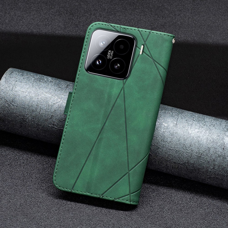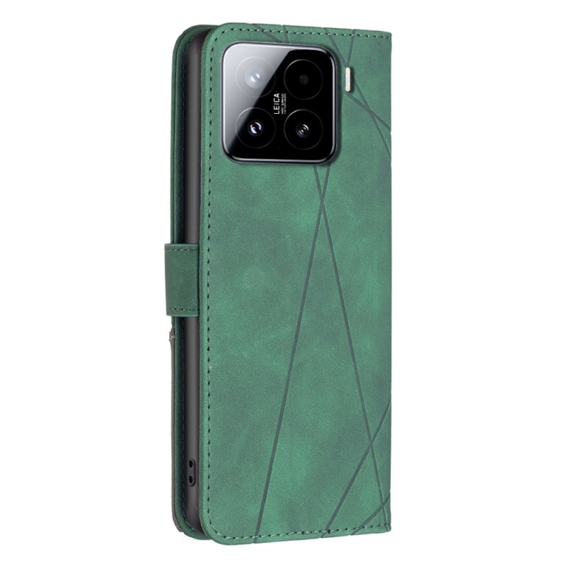 Coque portefeuille en cuir PU et TPU pour Xiaomi 15. Combine fonctionnalité et élégance avec son design géométrique, ses trois emplacements pour cartes, son compartiment pour billets et son support ajustable.